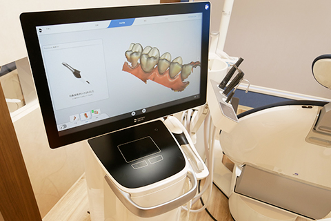3Dスキャナーも導入しており、お口に印象材を詰めることなく、デジタルデータ化による型取りを行います。スキャンするだけの簡単な処置なので患者さんの負担が少なく、また、お口に触れる機会が従来よりも少ないので衛生面でも安心です。患者さんが安心して快適に治療を受けられる設備が充実しています。